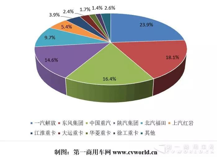 今年1-7月,重卡市場前六強(qiáng)依次為:解放(17.9萬輛)、東風(fēng)(13.59萬輛)、重汽(12.3萬輛)、陜汽集團(tuán)(10.91萬輛)、福田汽車(7.24萬輛)和上汽紅巖(4.01萬輛),這六家企業(yè)合計銷售65.95萬輛,占到1-7月重卡總銷量74.88萬輛的88.1%比重,比上年同期增長1.1個百分點。加上江淮和大運的前八強(qiáng)合計銷量為70.67萬輛,合計市場份額為94.4%,比上年同期減少0.4個百分點。