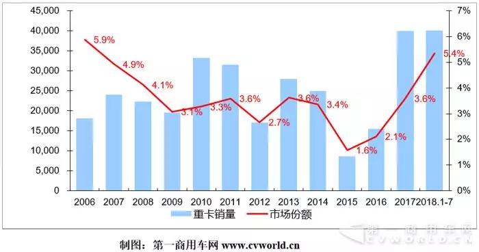 東風(fēng)重卡近年來銷量及份額走勢圖