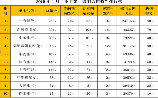 行業(yè)資訊2019年1月份國(guó)內(nèi)重卡品牌新聞傳播整體點(diǎn)評(píng):