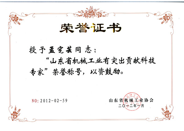 公司總經(jīng)理被評(píng)為山東省機(jī)械工業(yè)有突出貢獻(xiàn)科技專家